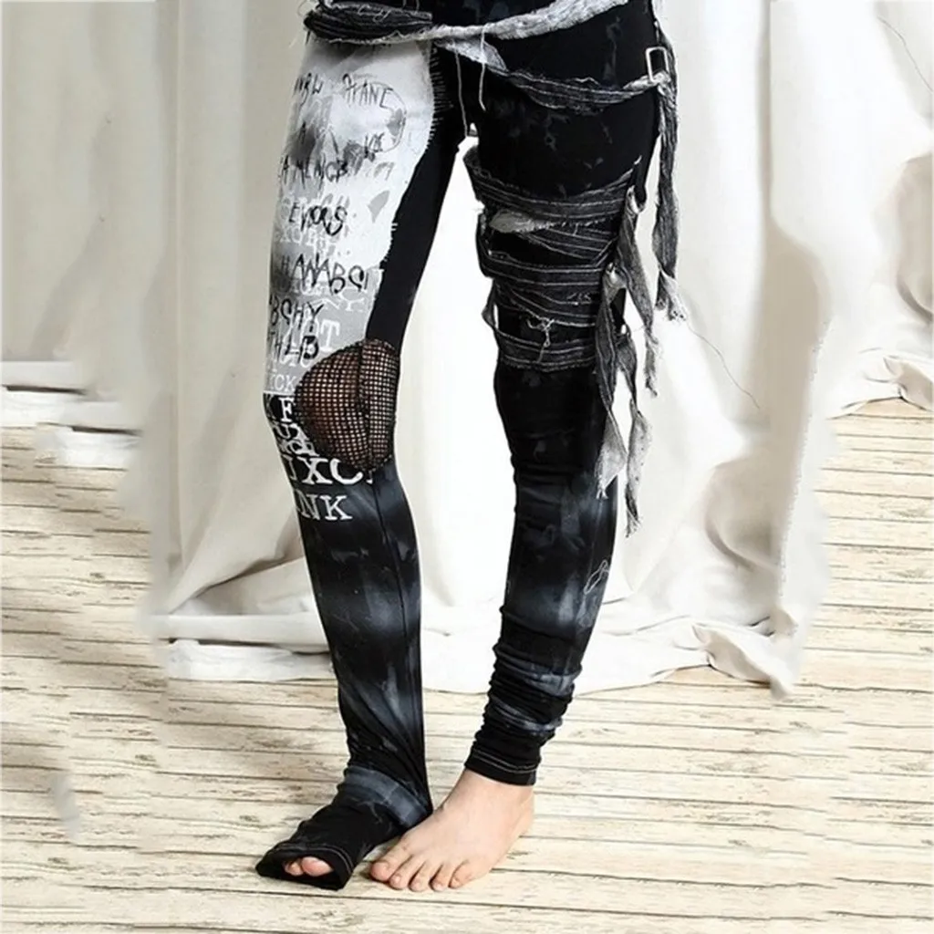 Новинка, готический панк стиль, женские брюки-коромыслы, обтягивающие, крутые, длинные штаны для девочек, Осенние уличные брюки с эластичной резинкой на талии, узкие, с дырками