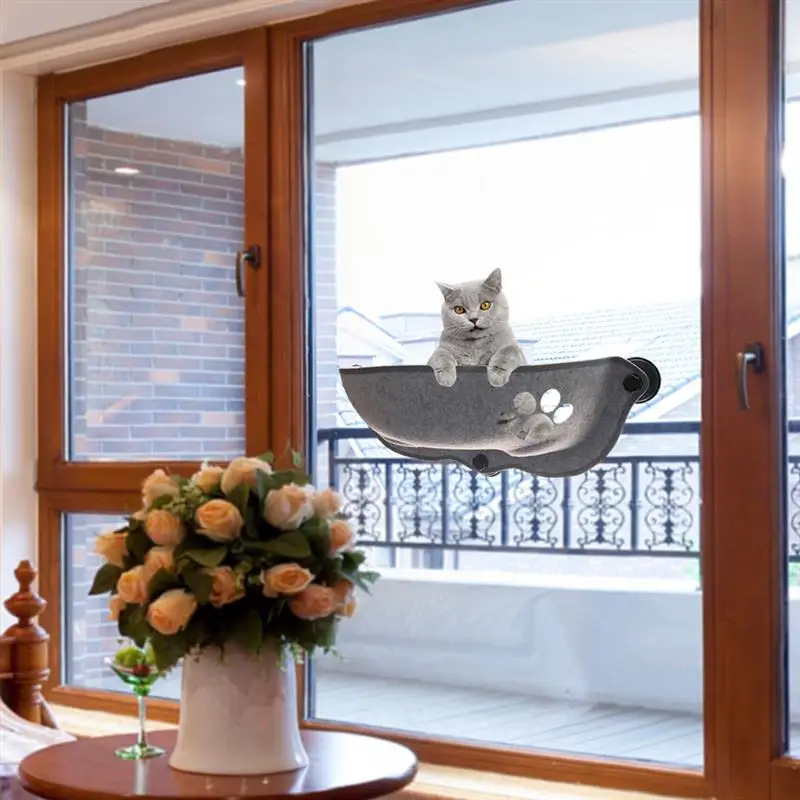 Гамак для кошек оснащен присоской, которая может сосать гладкую поверхность или крепиться к стене, она может удерживать до 20 кг.