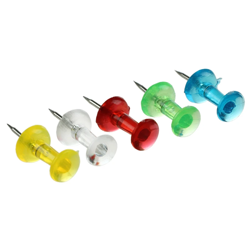 5 colors push pins are included here, plastic top.