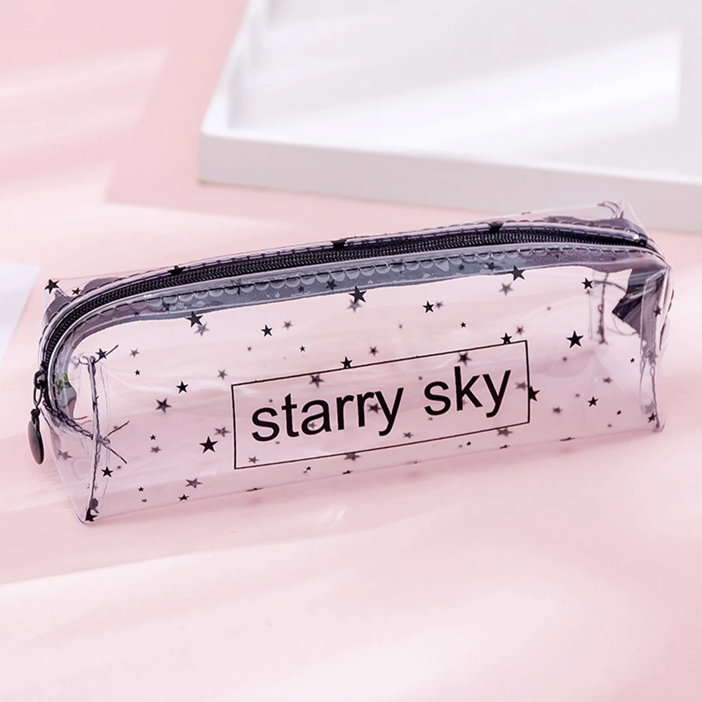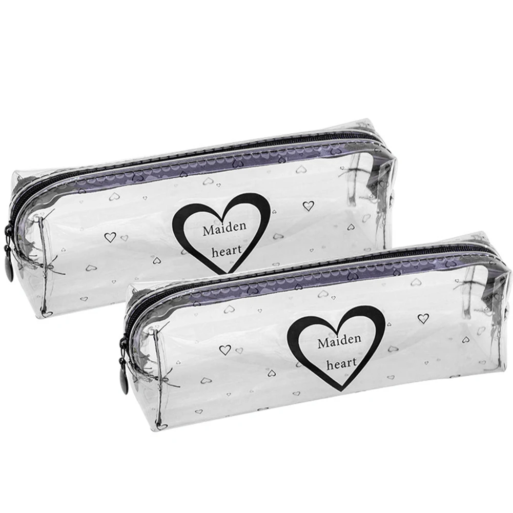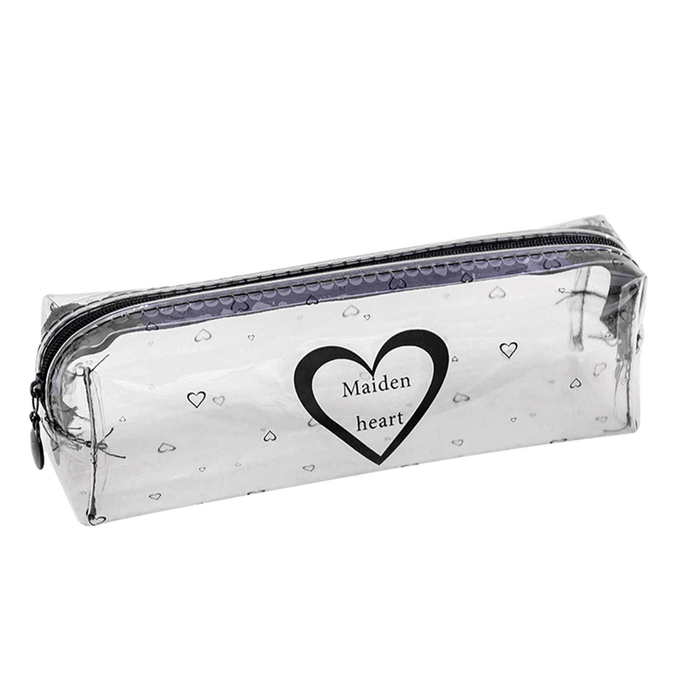 Прозрачный чехол для карандашей с надписью в виде сердца