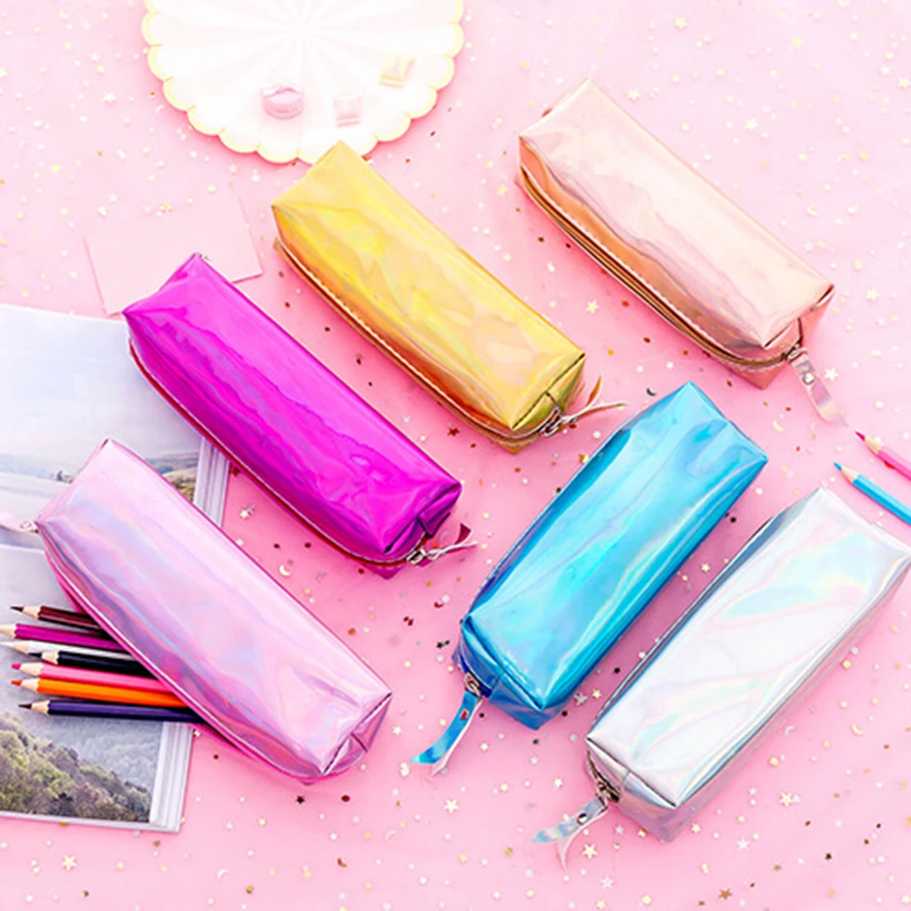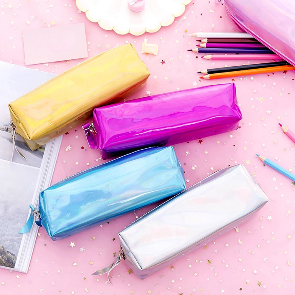 Светоотражающая Лазерная Коробка для ручек и карандашей чехол канцелярская сумка на молнии органайзер для хранения