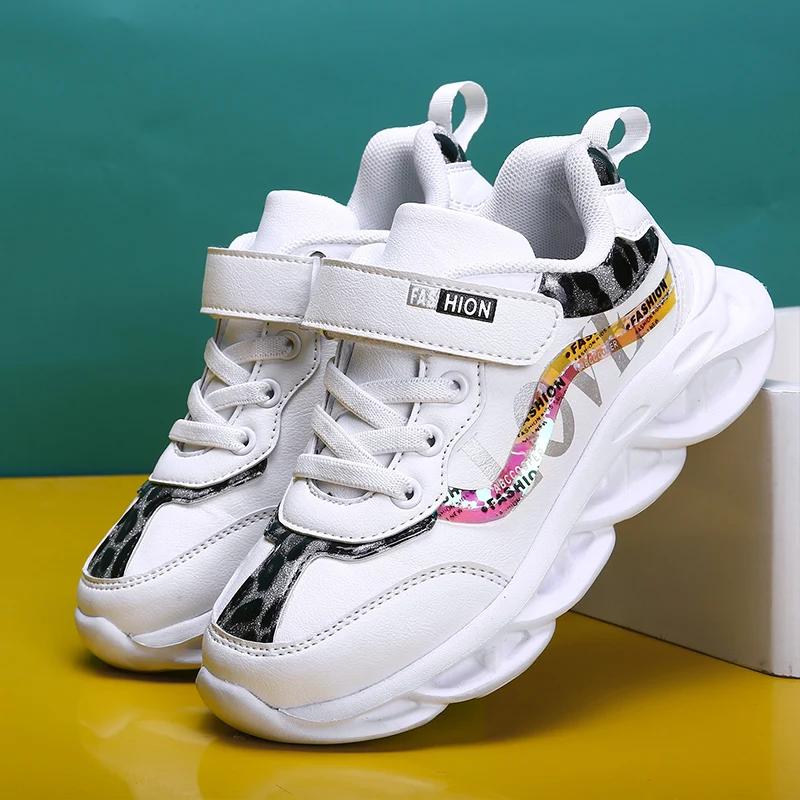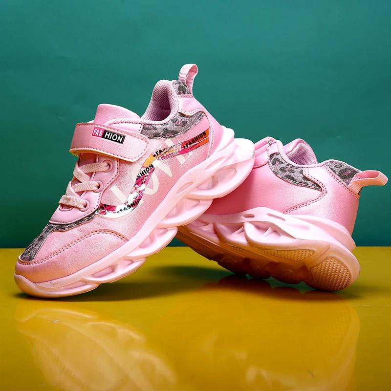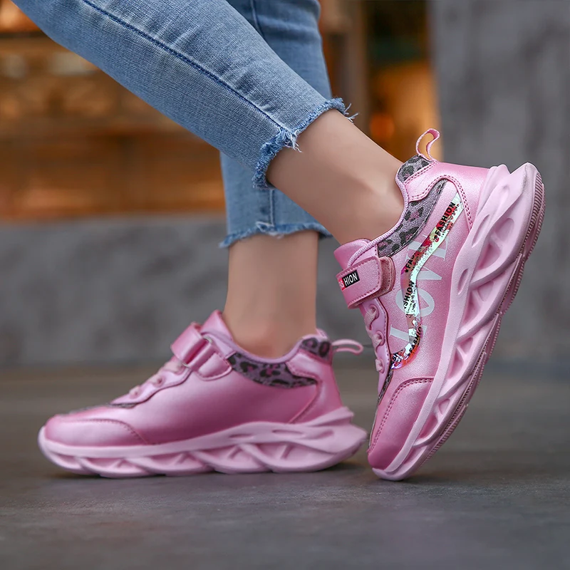 Брендовая Высококачественная водонепроницаемая кожаная обувь для бега для девочек; мягкие детские кроссовки на толстой подошве; прогулочная обувь для девочек; спортивная обувь