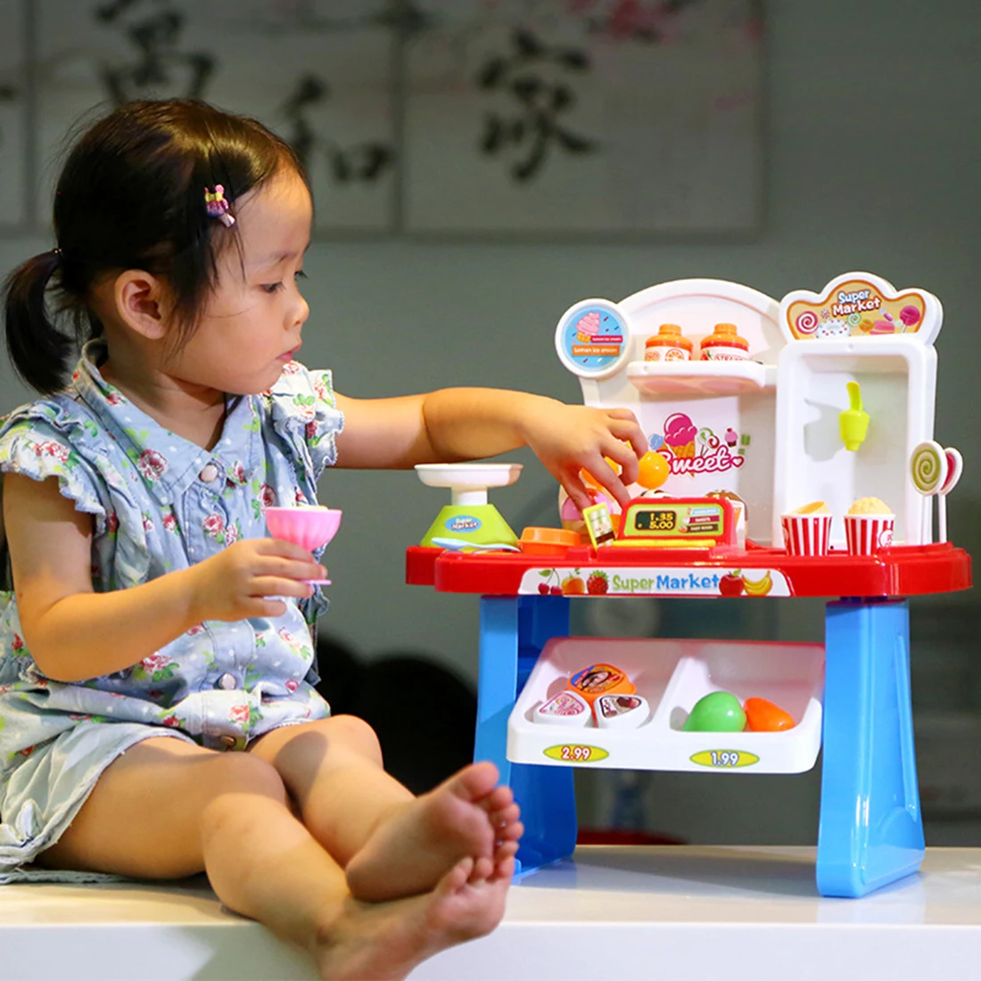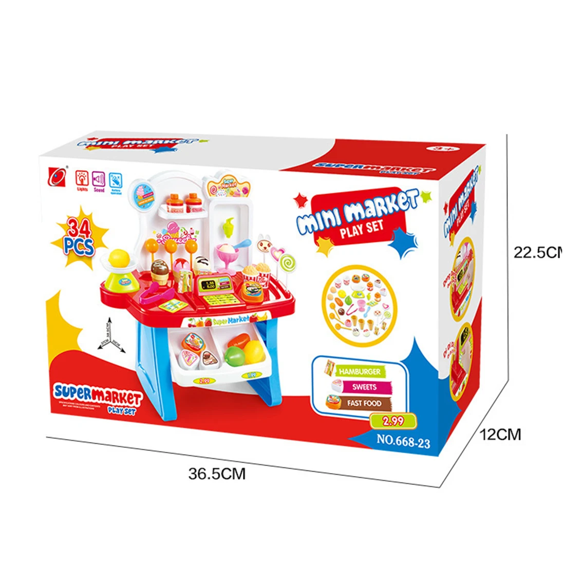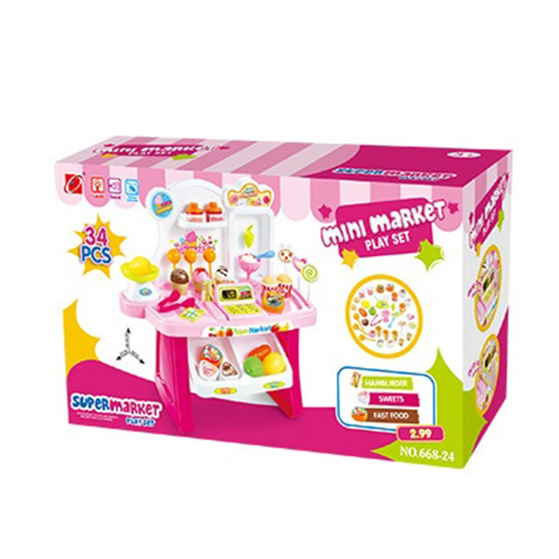 34 шт./компл., детский мини-набор для игры в супермаркетах, игровой стенд для магазина, игрушка для продуктов, светильник, звук-синий/розовый
