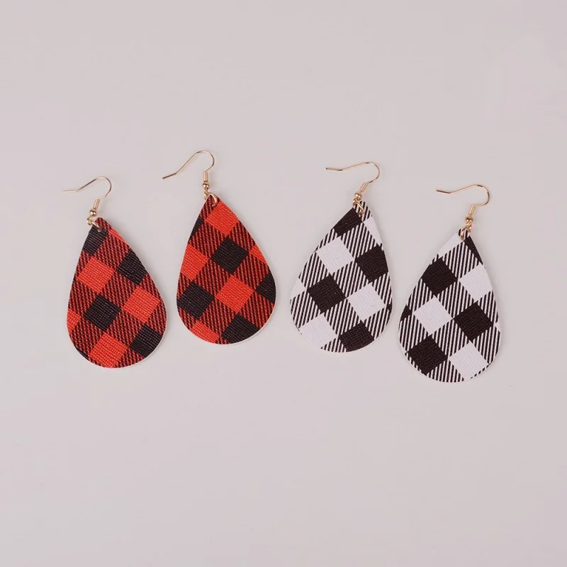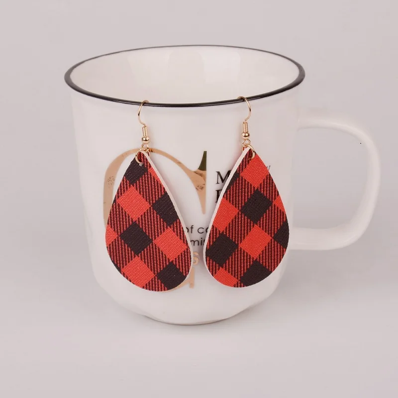 Женские кожаные серьги в клетку Buffalo, красные серьги-капли в форме листьев, ювелирные изделия 2020