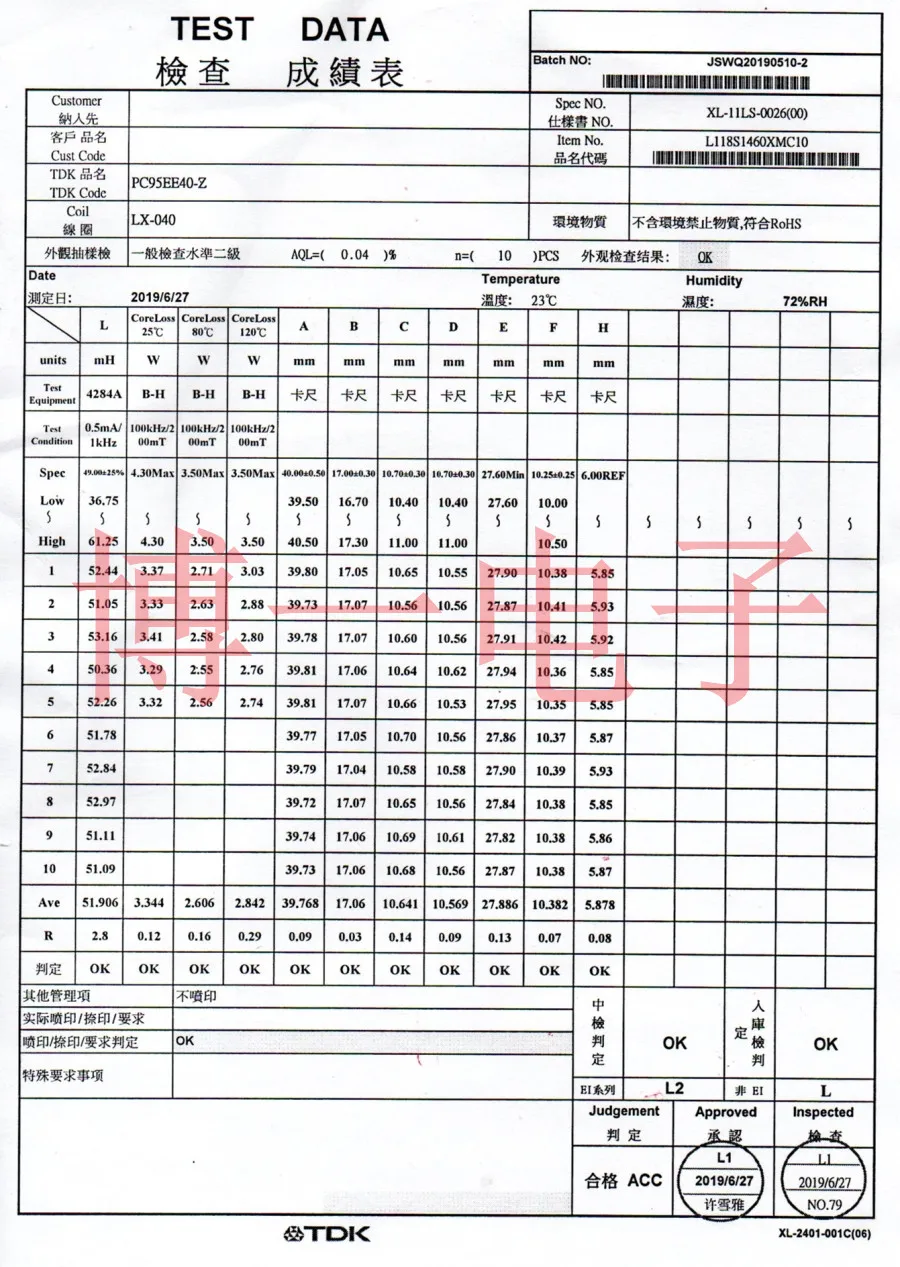 Тип 1:TDK EE40 PC95 core