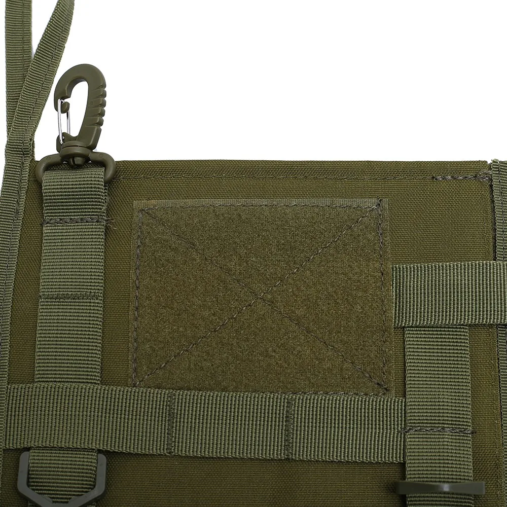 Изготовлен из высококачественного нейлонового материала. Дизайн Molle, легко прикрепить другие элементы системы molle. Крючок и петля спереди, вы можете положить ваш любимый патч. Небольшой мешочек на внешней стороне для хранения некоторых мелких предметов. Дизайн на молнии, удобно открывать и закрывать. С подвесным ремешком. Легко повесить на рождественские деревья. С 4 Держатели боеприпасов. Водонепроницаемая подкладка, не беспокойтесь использовать его в дождливый день