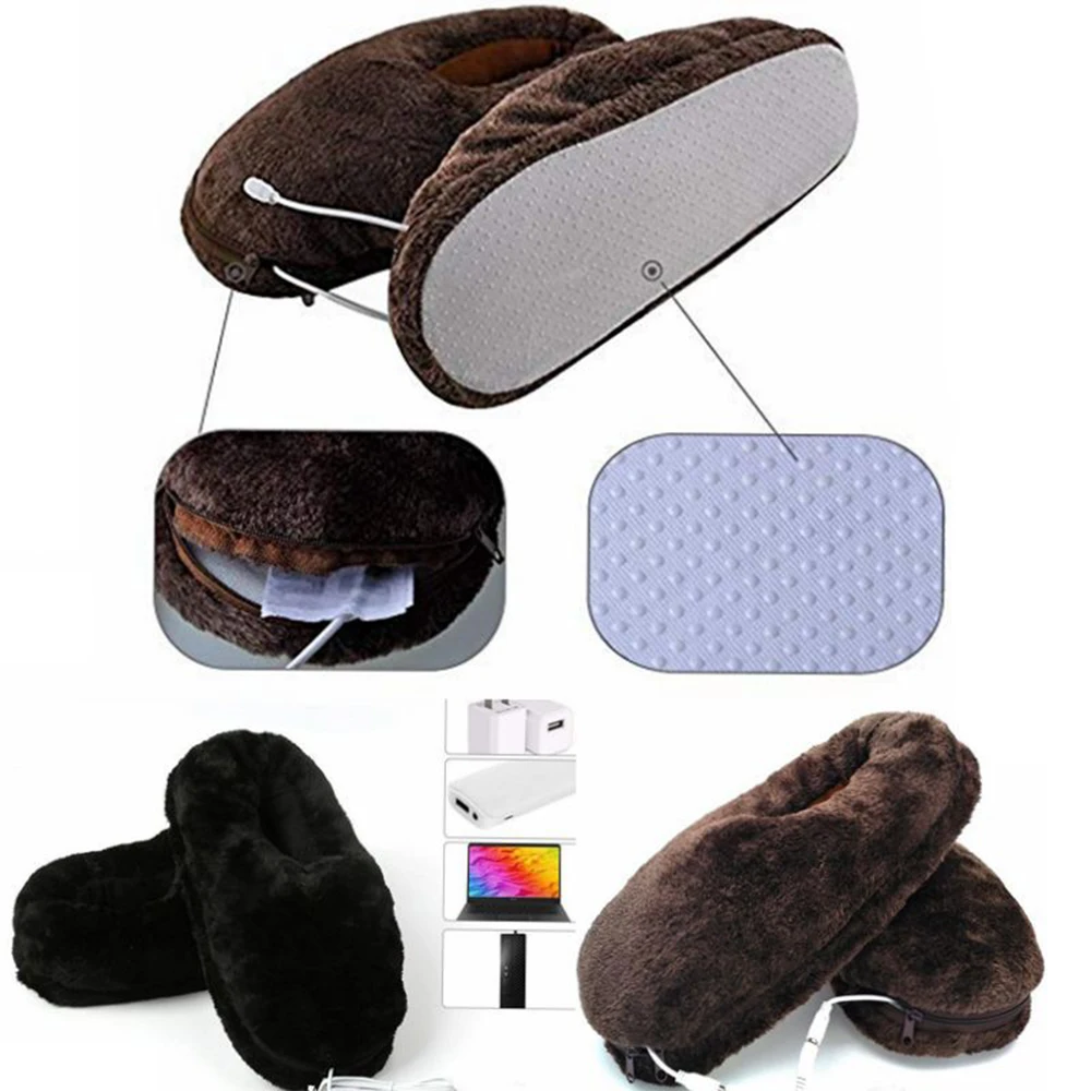 Теплые ботинки с подогревом с USB; Тапочки с подогревом; Удобная плюшевая теплая обувь для всей семьи и офиса в холодную погоду