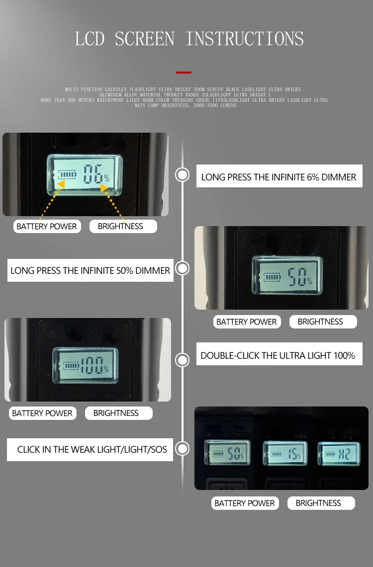 * Режим высокой яркости требует двух нажатий (нажмите один раз и откройте только 50% яркости)
