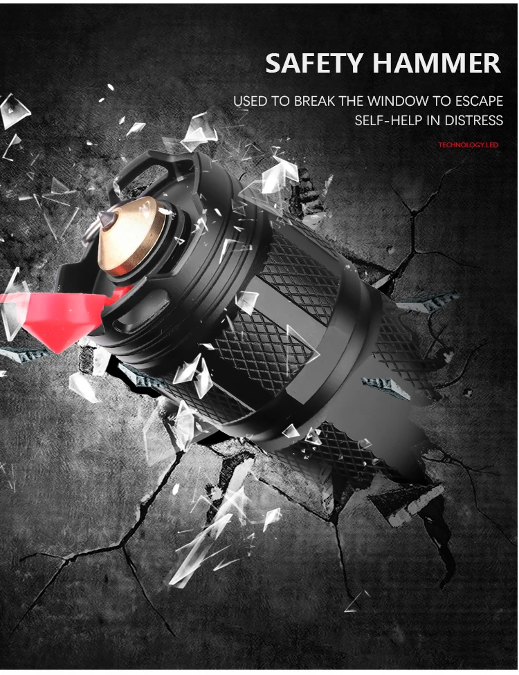 * Крепкий HAIII военный сорт жесткая анодированная отделка из аэрокосмического алюминиевого сплава со съемным стальным молотком сзади противоударный