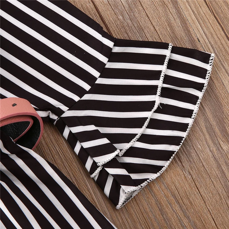 2020 г. Одежда для малышей Детский комбинезон для маленьких девочек, комбинезон в полоску с длинными рукавами и оборками, длинные штаны наряд с поясом, комбинезон, одежда От 1 до 5 лет