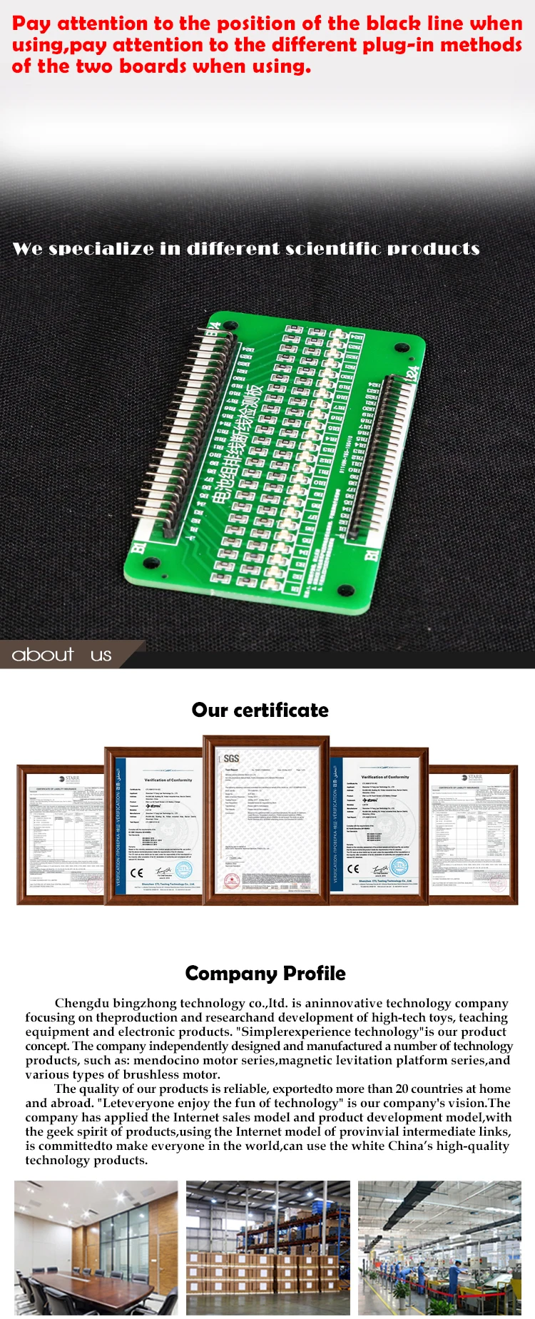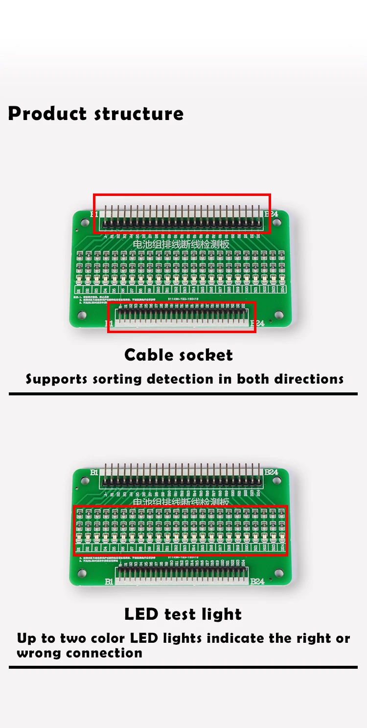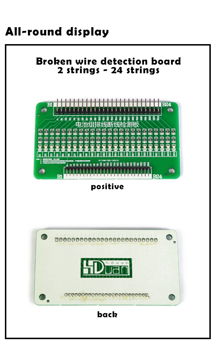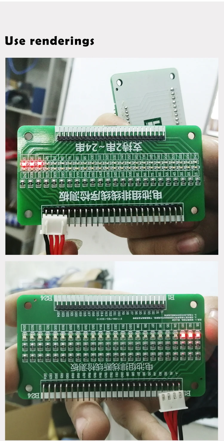 Информация о продукте Полностью совместим со всеми видами защиты платы обнаружения кабеля, вы можете точно найти положение неправильной линии, четко показать направление последовательной линии кабеля, является ли это неправильным, больше не бойтесь сгореть защитную плату из-за неправильного кабеля. Двухцветный СВЕТОДИОДНЫЙ индикатор показания поддерживает обнаружение сортировки в двух направлениях, поддержка кабеля обнаружения 2 серия-паяный пластинчатый теплообменник 24 гирлянды светодиодные аккумуляторные батареи, и мы поддерживаем обнаружения кабеля 2,54 мм шаг 2,0 мм шаг. Параметры продукта Вес: 15 г Размер: 69*43,5*6 мм Применимо: 2 струны-24 струны Совет по применению Когда батарейный блок подключен к аккумуляторному блоку, тестовая плата может быть вставлена. Если светодиоды имеют разные цвета, соответствующие светодиоды разных цветов подключаются неправильно. На что следует обратить внимание Пожалуйста, следуйте инструкциям, чтобы вставить тестовую доску. Порядок подключения и кабеля не может быть неправильным.