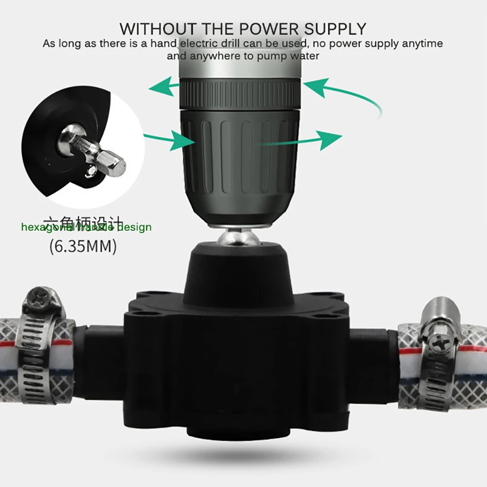 Водяной насос с 6,35 шестигранным хвостовиком питается от ручная дрель, который может работать без электрического силового кабеля, как вы хотите.