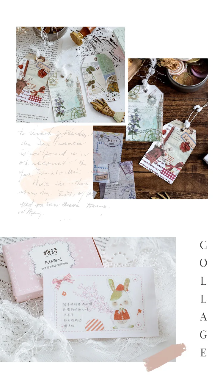 30Pcs/box Retro Decorative Sticker Kawaii Plant Stationery Sticker Paper Adhesive Sticker For Kid DIY Scrapbooking Supplies
