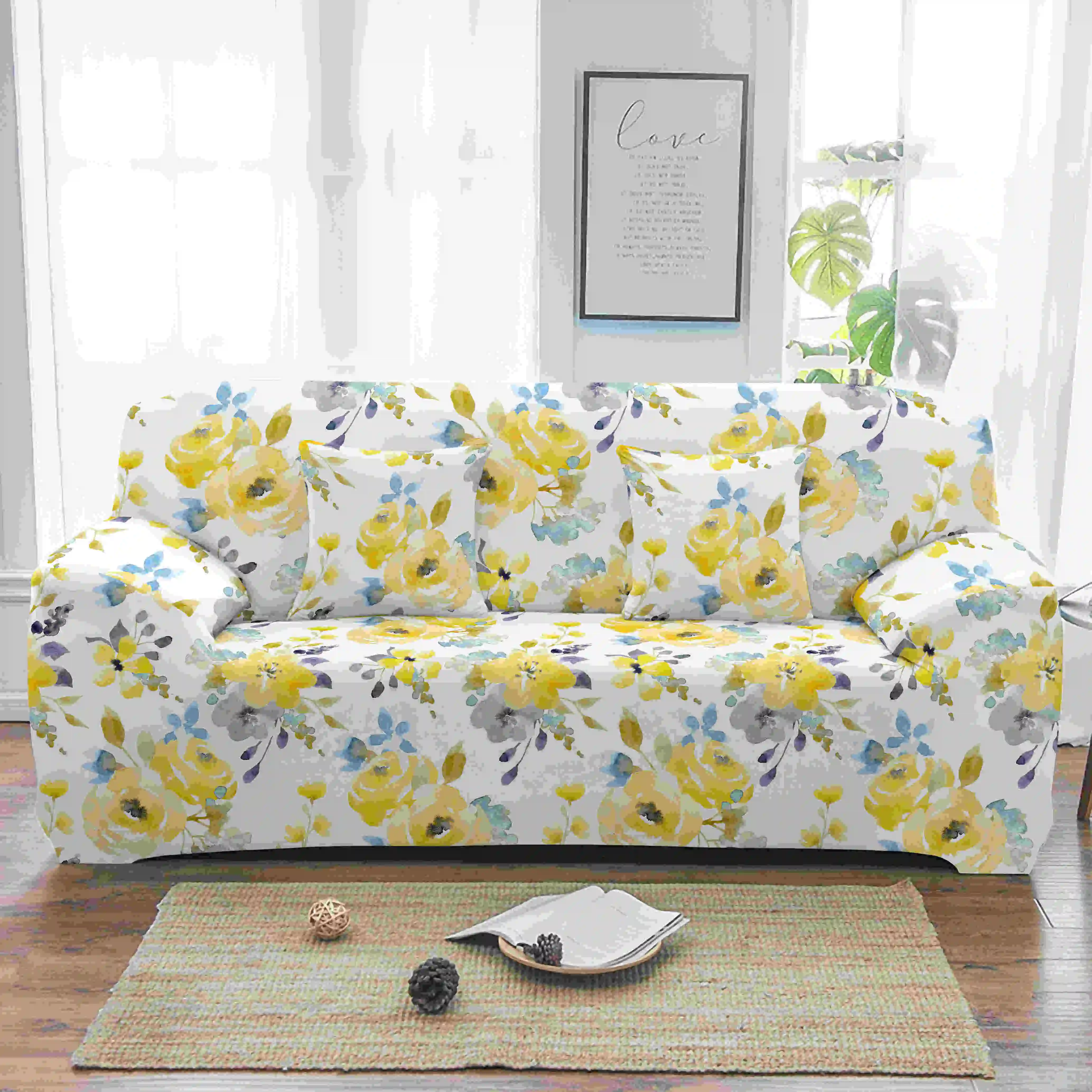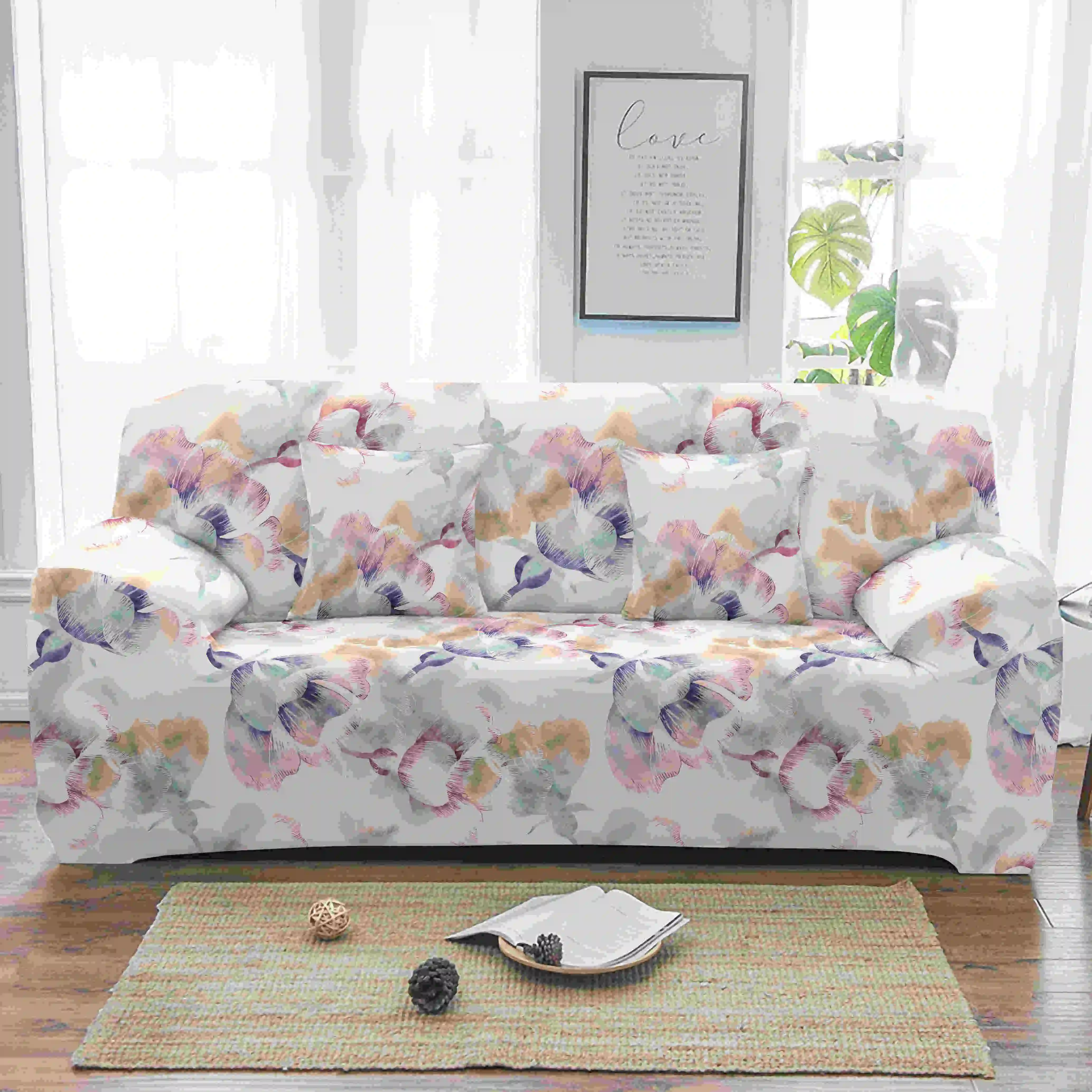Only a sofa cover, you can exchange a comfortable environment, soft touch, protect your sofa from water, milk and other stains. Save you money by extending the life of your chair sofa, make your old Furniture appear brand new, let you and your family feel the charm of home, life comes from dress up. Features: Brand Name: Homesky Material: 100% Polyester Pattern: Pinted Package Includes: 1pc sofa cover/2pc pillow covers Size: 1-seater sofa cover: suitable for sofa size 90-140 cm 2-seater sofa cover: suitable for sofa size 145-185 cm 3-seater sofa cover: suitable for sofa size 190-230 cm 4-seater sofa cover: suitable for sofa size 235-300 cm pillow cover: 45x45cm Please Note: 1. This sofa cover applicable to sofa which there is a gap,between seat with backrest and armrest.(Please make sure that your sofa has deep gap to slip the foam bars before purchase.Our sofa cover is not suitable for the sofa with shallow gap.) 2. Please measure your sofa include armrest,then choose the size,if you don't measure it,the sofa cover will be smaller than your sofa. 3. Manual measurement 1-3cm error is allowable,different country have different size,please check it before you buy. 4. Due to the long distance transportation problem,the product will be a little fold,it maybe not so flat as picture ,but dose not affect to use. 5. Since the difference between different monitors,the picture may not reflect the actual color of the item.We guarantee that the pattern is same as shown in the photos. Which one you can't choose from color button,please contact us.