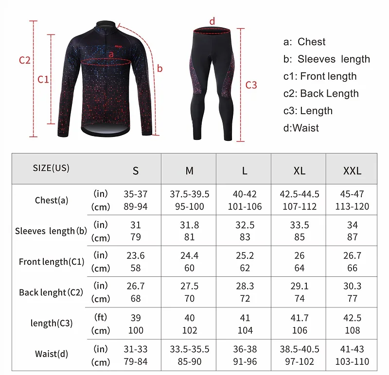 • 【Удобство 】: полная длина молнии позволяет выпустить излишки тепла; 3 задних кармана для езды; • 【Воздухопроницаемость: отверстие для ног имеет застежку-молнию для легкой вентиляции, быстро пропускает воздух, сохраняет тело сухим и удобным; Светоотражающая полоса для активной видимости в темноте. • 【Warm】: внутренняя часть из мягкого флиса сохраняет тепло, эластичные манжеты и опускается сзади, отстегивает ветер. • 【Slim desigh】: 3D резка, обтекаемый дизайн корпуса, лучше уменьшает сопротивление ветра и показывает свою фигуру. 【Изысканная работа 】: итальянская технология чернил и сублимационной печати, яркий цвет и никогда не выцветает.