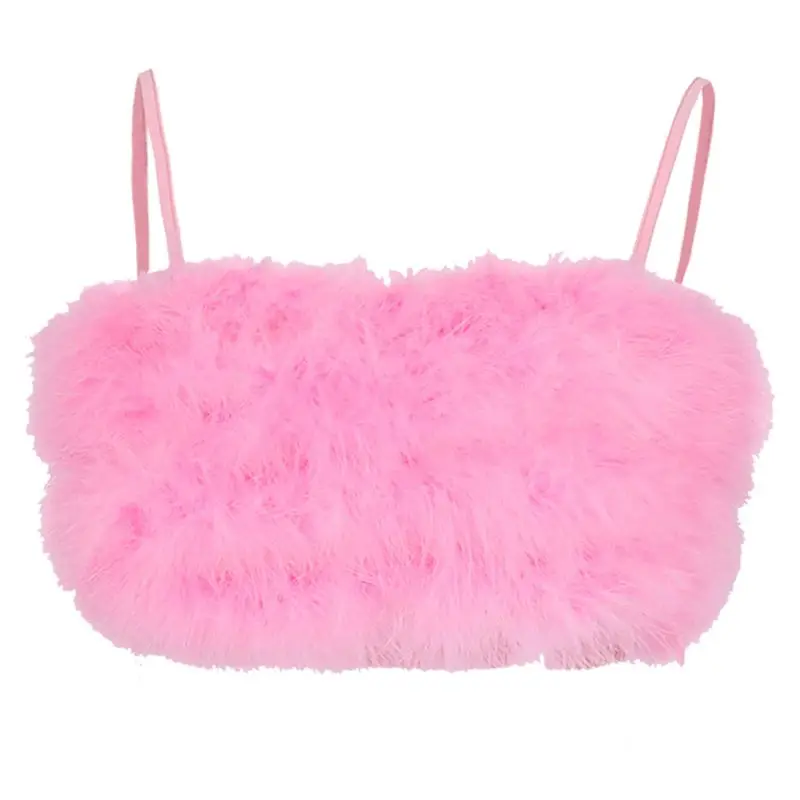 Бретельки-спагетти, Повседневная тянущаяся застежка, приталенный крой, однотонный, пушистое плюшевое украшение из искусственного пера, укороченная длина мини