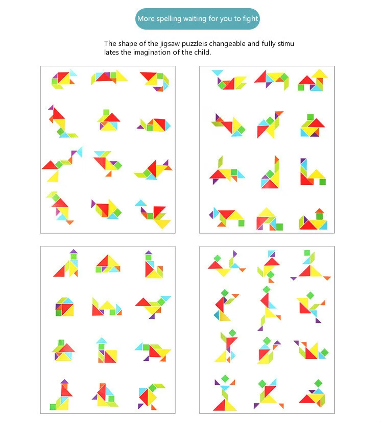 Деревянная головоломка для детей, головоломка, подарок, Когнитивная игрушка для детей, креативные развивающие игрушки, игровой набор для обучения танграма Возраст:> 3 года Место оргина: Китай Размеры: 22 см * 37 см * 5 см Вес: 0,3 кг