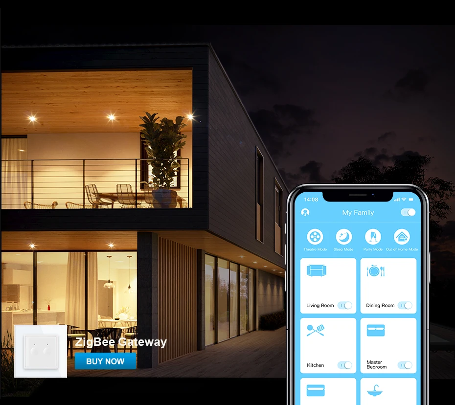 NOTE: smartphone APP displayed only works with light-adjustable feature switches and a gateway.