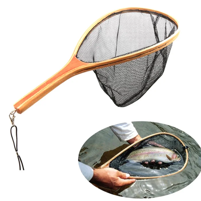 Новинка, сачок для ловли нахлыстом, сетка для ловли форели, портативные аксессуары с деревянной рамкой и ручкой