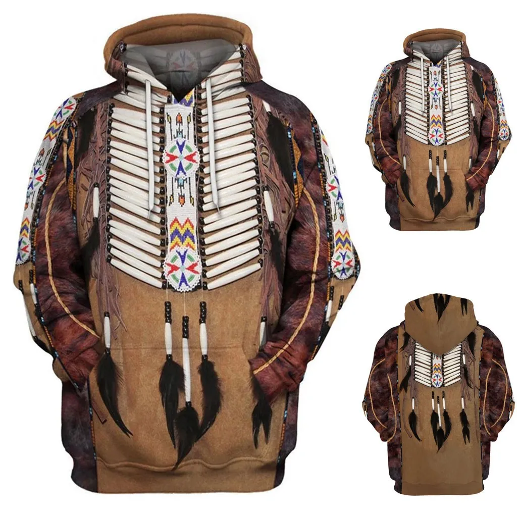 Мужская толстовка с капюшоном и длинным рукавом, винтажная Толстовка в этническом стиле с 3D принтом
