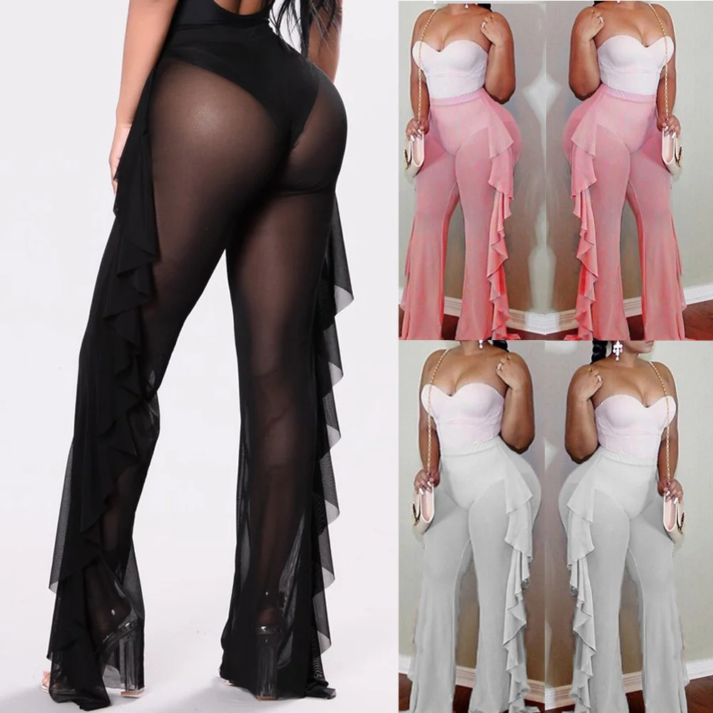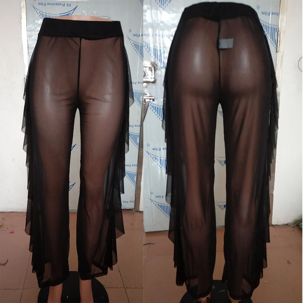 Стиль: пикантные женские брюки с широкими штанинами и сетчатыми оборками