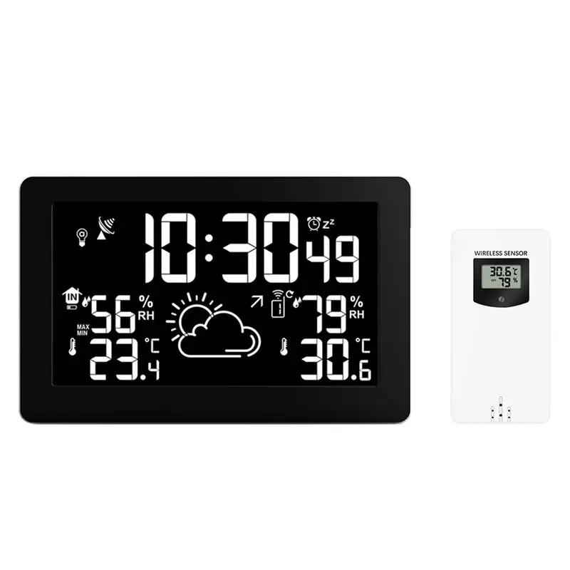 Погода: профессиональная Метеостанция обеспечивает вам Крытый Открытый погодные условия с 6 яркими значками: солнечный, слегка облачно, облачно, дождливый, тяжелый дождливый и Снежный, чтобы принять решение отрегулировать термостат или носить куртку.