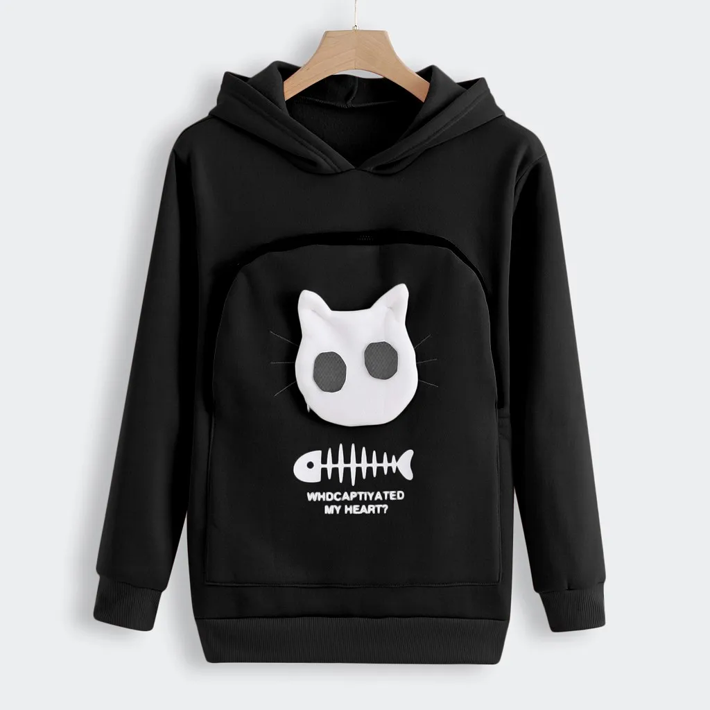 Женская толстовка мешок с нарисованным животным капюшоном топы переноска кошка дышащий пуловер Блузка