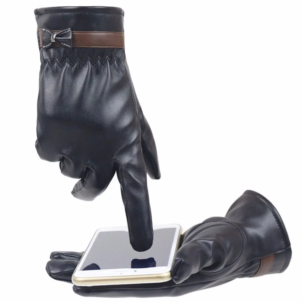 Модные женские зимние теплые кожаные перчатки с мягкой подкладкой