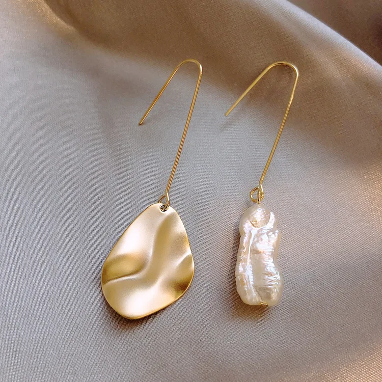 Золотые металлические асимметричные серьги с натуральным пресноводным жемчугом для женщин, большие висячие серьги в стиле барокко, эффектные ювелирные украшения