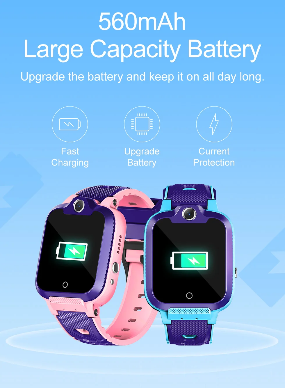 Из-за длительной транспортировки батарея детских умных часов будет в состоянии низкой мощности, пожалуйста, используйте адаптер питания 5 В/500 мАч для зарядки, А затем включите.