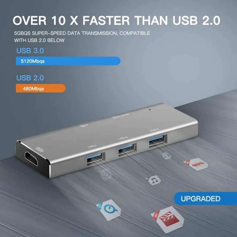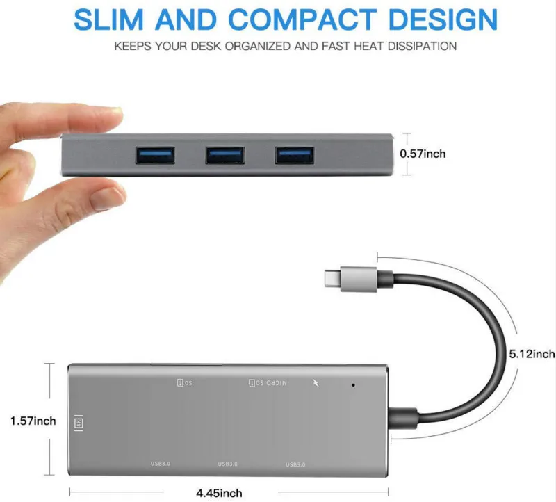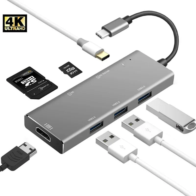 Особенности: 【Массивное расширение 】этот usb-концентратор 7 в 1 имеет 3 x USB 3,0 + 1 x HDMI 4 K порт + 1 x Micro SD + 1 x слот для sd-карты + 1 x USB-C PD (зарядка) адаптер. Отвечает всем вашим требованиям с различными портами в одном адаптере. Простое расширение для устройств USB C делает работу и использование ноутбуков более эффективным. 【Lightning быстрая передача и зарядка 】3 порта usb type C используют чипы VL817 и VL102 для обеспечения супер скорости передачи данных на 5 Гбит/с к любому порту USB и поддержка быстрой зарядки PD, обратная совместимость с USB 2.0.1.1 и 1,0. 【Тонкий и компактный дизайн и расширенное управление тепловыделением 】этот многопортовый концентратор готов к использованию сразу после подключения к устройству. Никаких дополнительных драйверов или приложений не требуется. Устройство имеет весь алюминиевый корпус и принимает процесс анодного окисления для дополнительной прочности и выдающегося рассеивания тепла. 【Crisp высокое разрешение и супер speed】зеркало или расширить экран на телевизор, монитор или проектор с разрешением до 4 k @ 60 Гц и 3840x2160 (1080 p). Наслаждайтесь быстрой скоростью и высоким качеством фильмов, не беспокоясь о задержках размытия или искажений. 【Мультисистемная поддержка 】устройство работает на всех iMac/MacBook Pro с USB-C портами, DELL XPS, Google Chromebook Pixel, hp Spectre X360, samsung Tablet, microsoft surface book/950XL, ASUS ZENBOOK 3, hp TPN-Q178, hp Elite x 2 1012, lenovo Yoga 900/910, samsung Galaxy S8, S8 +, LG G5 G6, huawei Mate10/P20 и другие устройства Примечание: есть usb c к hdmi адаптер и usb c к rj45 адаптер, выберите то, что вы хотите, когда делаете заказы.