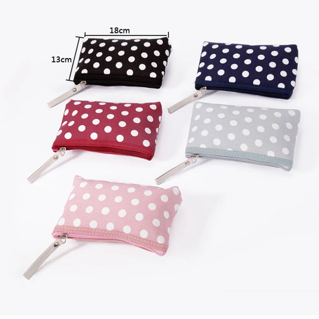 Ткань в горошек на молнии кошелек Мультифункциональные холстяные карты посылка сумка для ключей для мобильных устройств