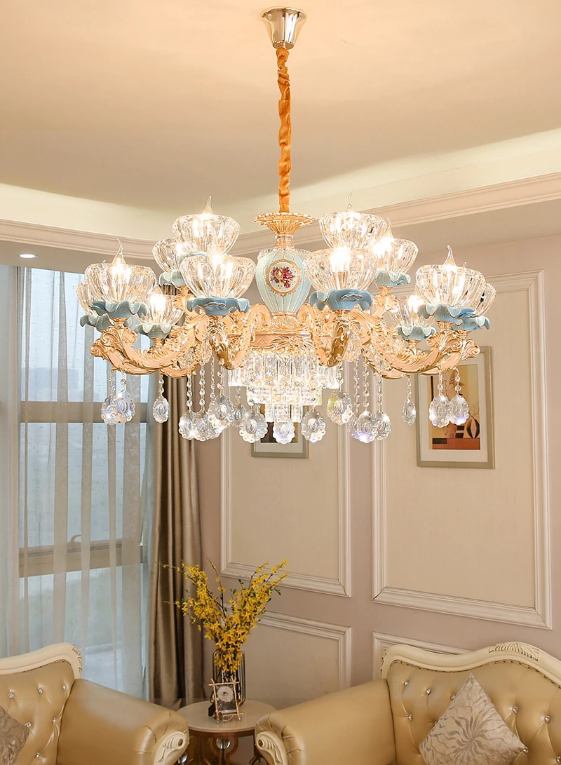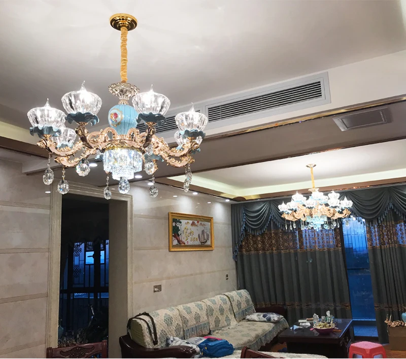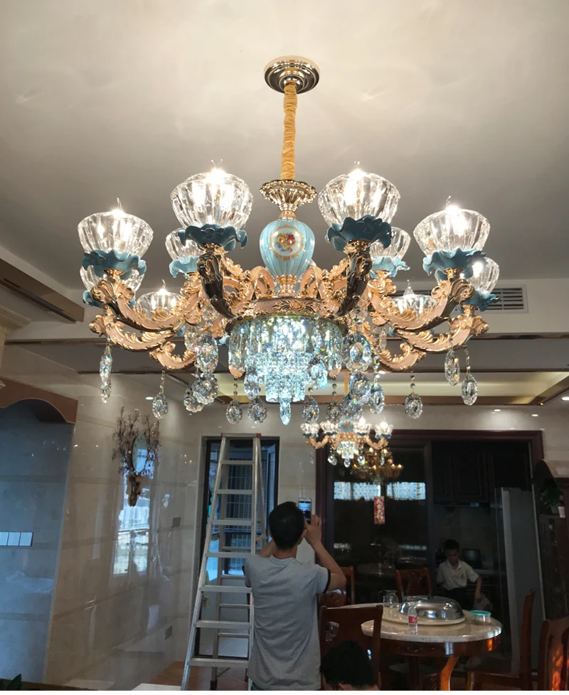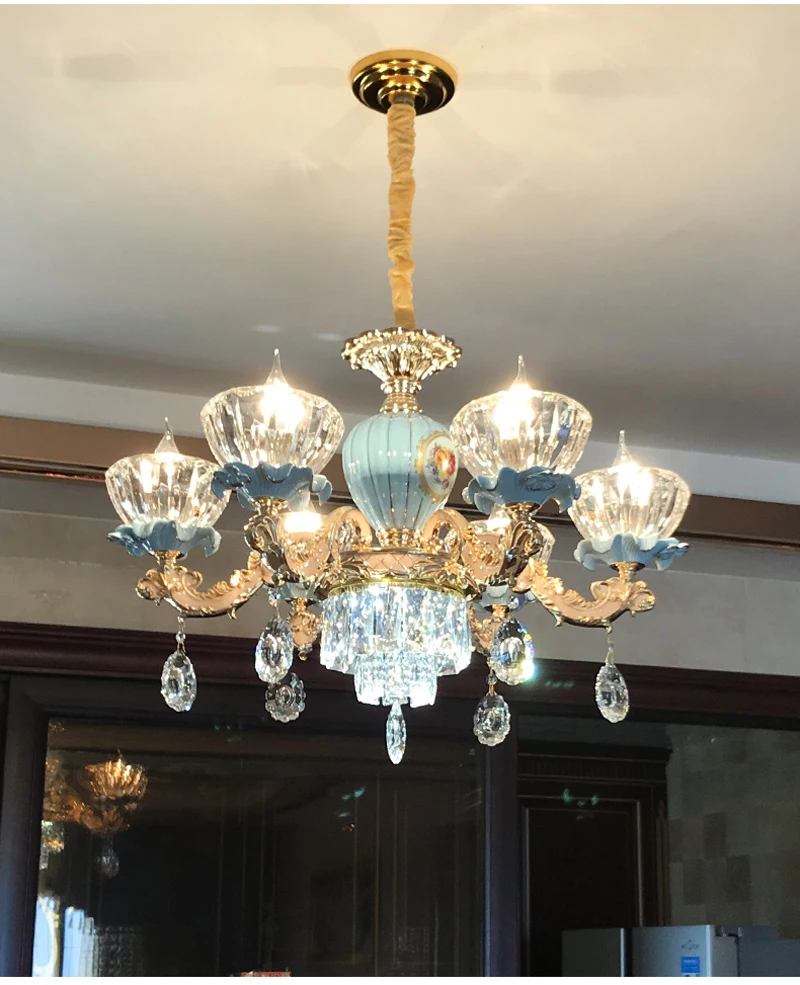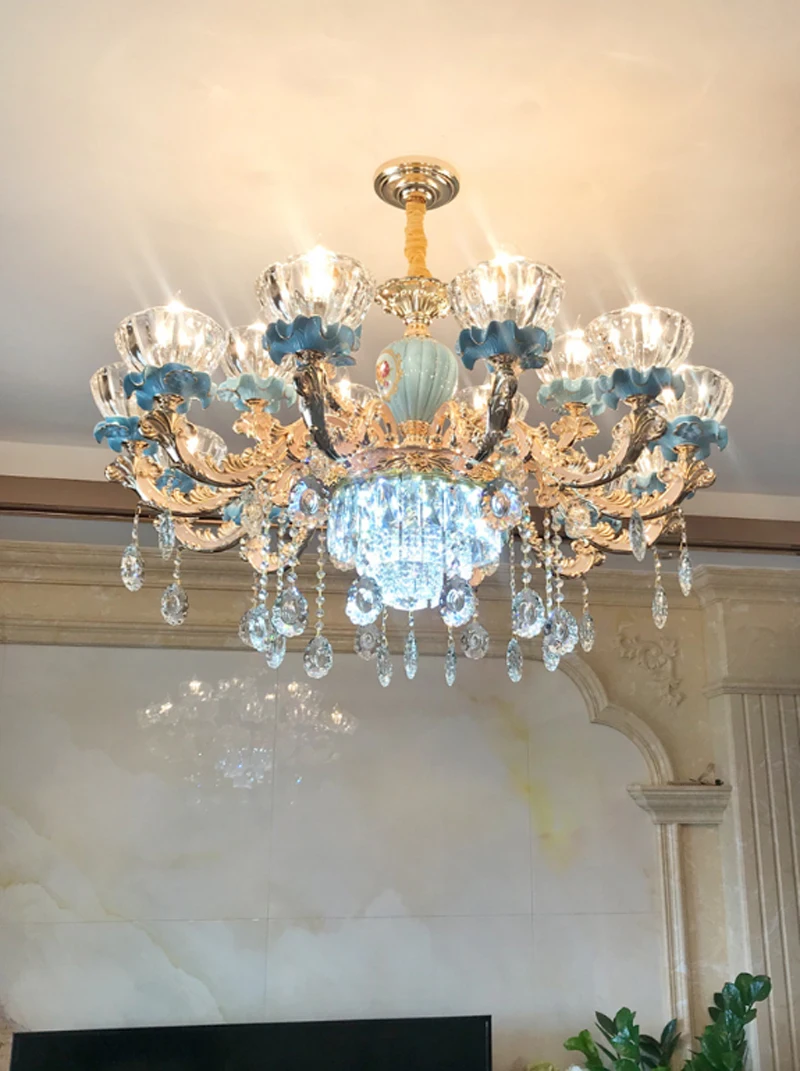 Современная хрустальная люстра, керамические хрустальные люстры, светильник, лампа из цинкового сплава, светодиодный светильник с кристаллами для гостиной E14
