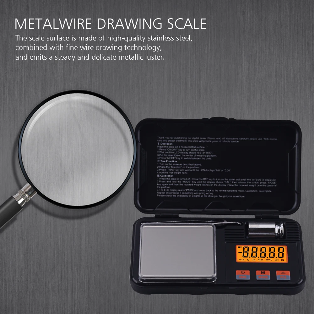 Благодарим Вас за покупку ваш 200g * 0,01g. Пожалуйста, внимательно прочитайте все операции перед использованием. Эта электронная шкала является прецизионным инструментом. С нормальным уходом и правильным лечением, это обеспечит долгие годы надежного обслуживания.