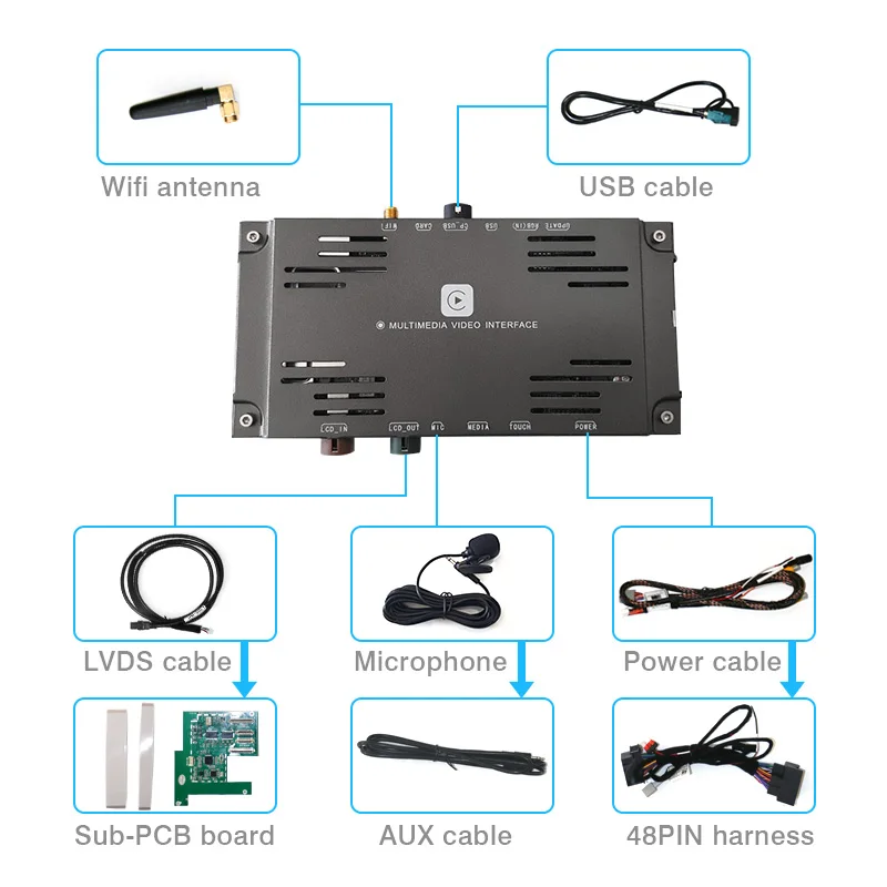 1. Полное управление кнопками OEM. 2. работа с проводным CarPlay также, выключите Wi-Fi сначала, подключите через кабель освещения (проводной держать ваш телефон заряжен в то же время) 3. работает с беспроводной Apple CarPlay, сопряжение по Bluetooth, передача по wifi. 4. gps навигационные приложения, Google maps, Waze и Apple maps все доступны, информация о живом движении 5. android Mirroring-Ссылка для телефонов Android (ссылка для загрузки) 6. USB флеш-накопитель для воспроизведения музыки и видео путем подключения usb-порта из CarPlay kit 7. музыкальные яблоки Spotify, Apple Music, Amazon и т. Д. аудио через Заводские носители PCM, Для некоторых приложений на дисплее отображается текст. 8. Голосовое управление с помощью слова «привет Siri…» 9. Послепродажное фронтальное/заднее/360 вход камеры. (Поддерживаются динамические Направляющие линии) 10. Регулировка эквалайзера. Лучшее качество звука. Выберите свой любимый стиль свободно (поп, рок, мягкий, стандартный ..)