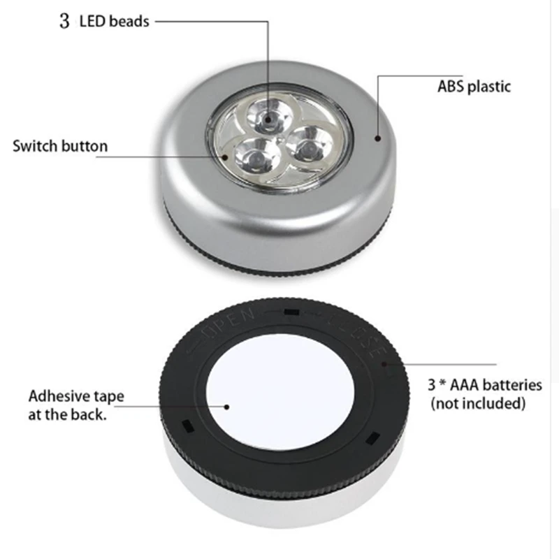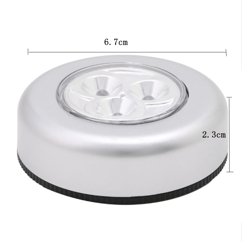 Цвет: серебро Форма: круглый Мощность поколения: сенсорный экран Применение: аварийной ситуации Тип изделия: ночные светильники Сертификация: CCC/CE Источник: светодиодный светильник Мощность: 0-5 Вт Питание: 3 батарейки AAA 1,5 В (не входят в комплект) Напряжение: 5 V Материал корпуса: АБС-пластик Водонепроницаемый: нет Размер товара: 68*24 мм 3 светодиодный сенсорный светильник на батарейках Палка Сенсорная лампа, белый светодиодный светильник. Светодиодный светильник длится 100 000 часов. Легко установить-не требуется проводка, просто отклейте и приклейте. Отлично подходит для шкафов, складских помещений, чердаков, ползающих помещений, ящиков для инструментов, Навесы, автомобили, лодки, караваны, грузовики, Пешие прогулки, кемпинг и многое другое.