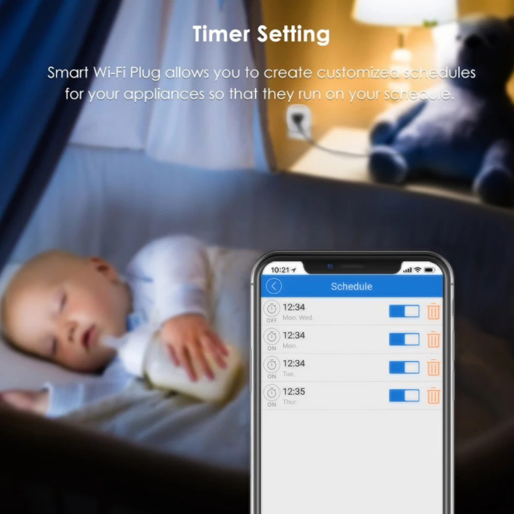 Практичная умная розетка с Wi-Fi, штепсельная вилка европейского стандарта для Alexa Google Home, ночной Светильник