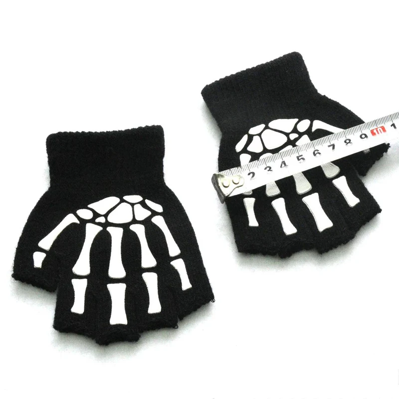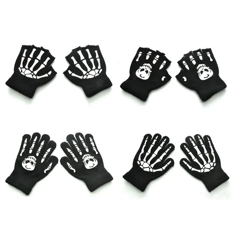 Детские перчатки, светящиеся Детские забавные варежки с черепом для мальчиков и девочек, зимние теплые перчатки, подарок на Хэллоуин, черные варежки Happy От 5 до 12 лет