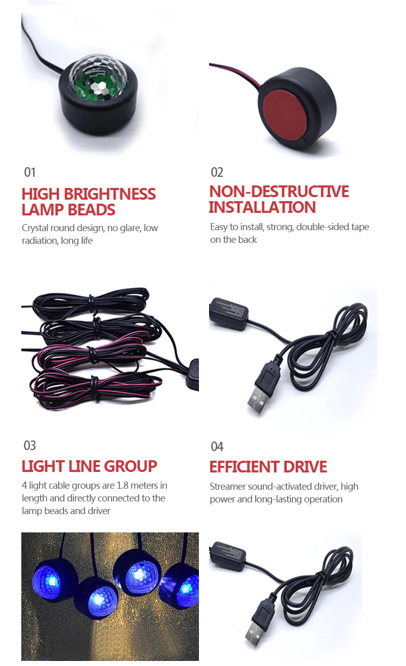 1. 100% новое поступление. Гарантия высокого качества. 2. Универсальный USB интерфейс, Многоуровневое использование, автомобиль, дом может быть использован, и использование комнаты приносит различную атмосферу. 3. Применение: компьютер, внешний аккумулятор, адаптер для зарядки мобильного телефона, автомобильное зарядное устройство и т. д.