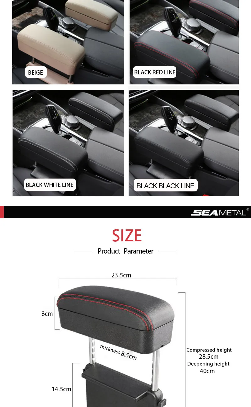 Название продукта: Беспроводная зарядка подлокотник коробка для хранения Цвет: черный, красный, белый, бежевый Размер коробки: около 23,5х8, 5х8 см Максимальная высота: 40 см Материал: высокое качество из искусственной кожи Вес: около 1,1 кг Модель: Универсальная подходит для большинства автомобилей Размещение: универсальное для привода и пассажирской стороны.