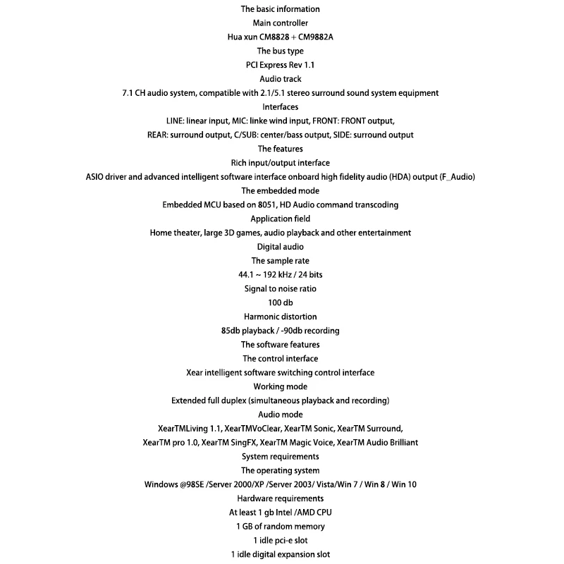 1 x CM8828 PCIe7.1-CH sound card (standard long iron plate)