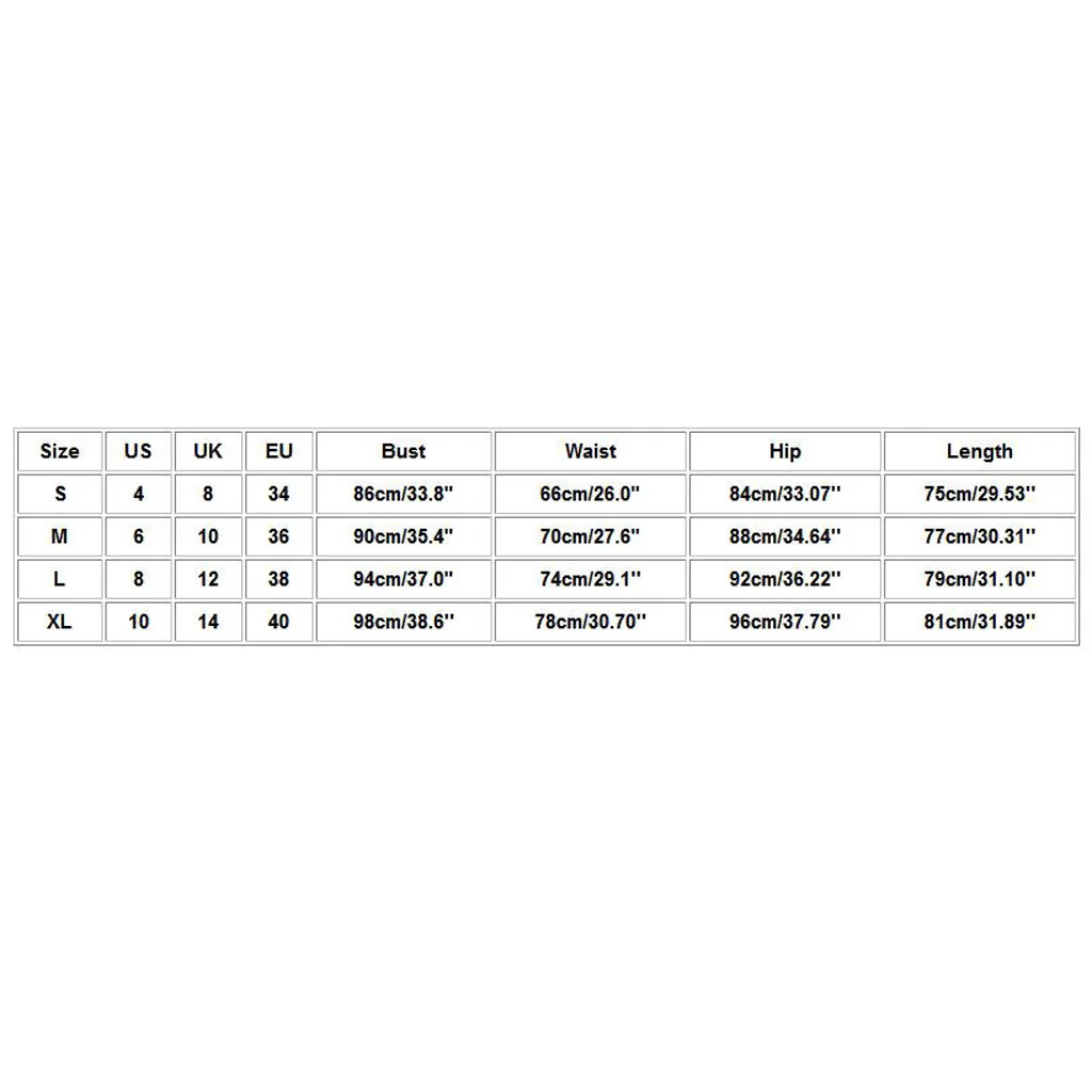 Размеры Свяжитесь с нами Великобритания ЕС Обхват груди Обхват талии Обхват бедер Длина S 4 8 34 86 см/33,8" 66 см/26,0" 84 см/33,07'' 75 см/29,53'' М 6 10 36 90 см/35,4" 70 см/27,6" 88 см/34,64'' 77 см/30,31'' L 8 12 38 94 см/37,0" 74 см/29,1'' 92 см/36,22'' 79 см/31,10'' XL 10 14 40 98 см/38,6'' 78 см/30,70'' 96 см/37,79'' 81 см/31,89''