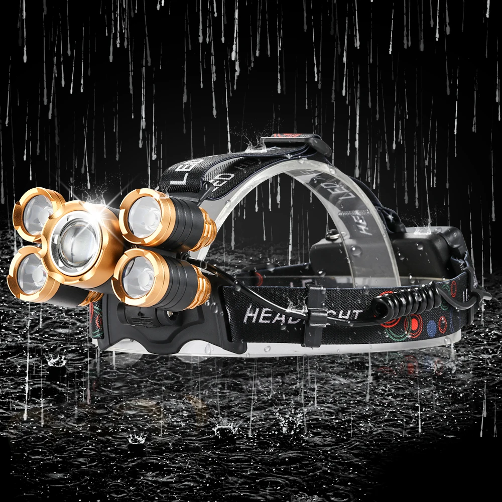 Мощный светодиодный светильник налобный фонарь 5 светодиодный T6 налобный фонарь 8000 Люмен флэш-светильник Фонарь налобный светильник 18650 батарея лучше всего подходит для кемпинга/рыбалки