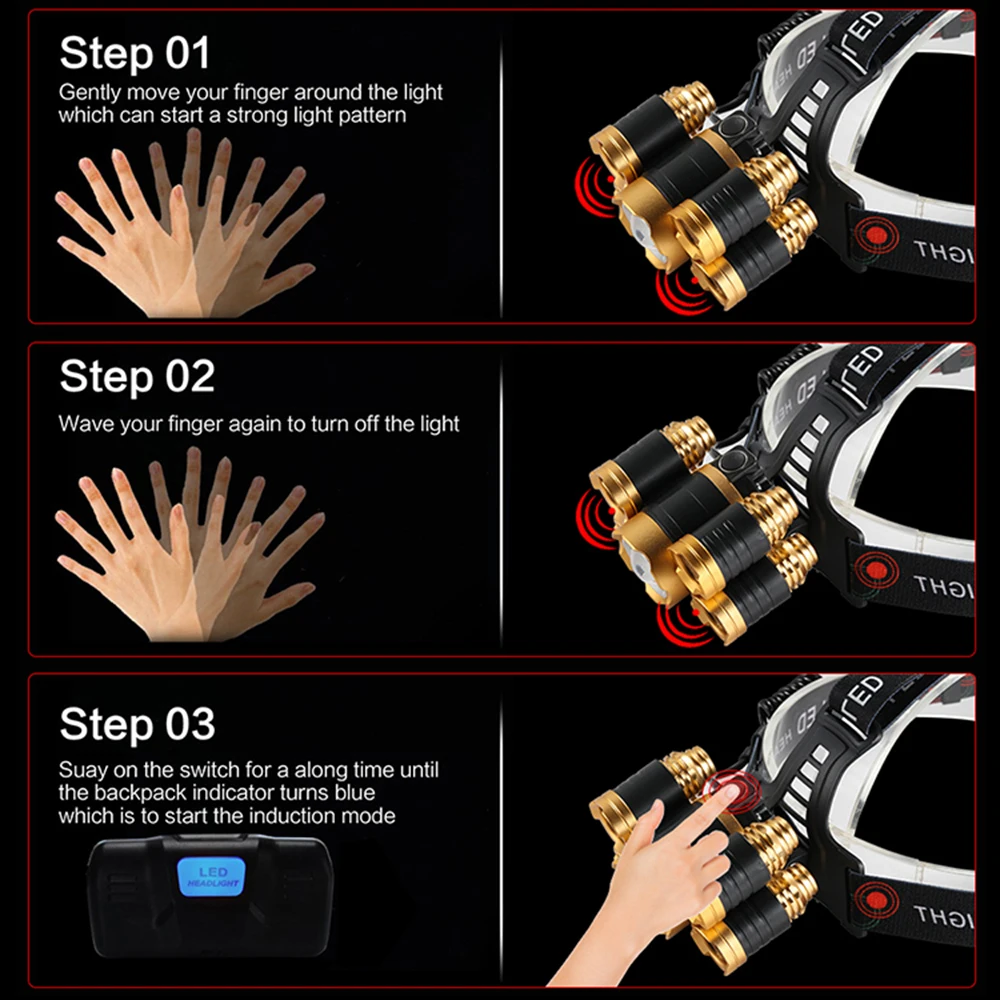 Вы можете выбрать фару с помощью сенсорного переключателя, чтобы освободить руки! Не нужно нажимать переключатель, махать рукой, чтобы включить светильник