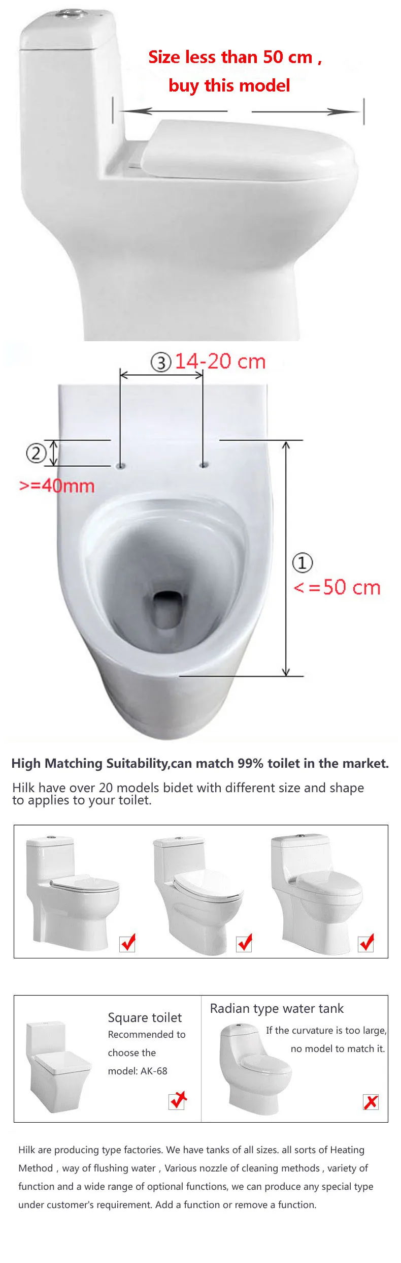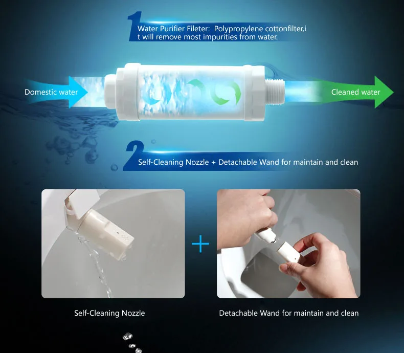 1. Многомерный эффект стирки: сильнее, чище, здоровее и удобнее 2. Серебряное ионное соединение нанометра сиденья и сопла: антибактериальное свойство и высокая безопасность. 3.3D расширенное сиденье: снижает давление и предотвращает онемение ног и синхронизацию. 4. Класс водонепроницаемости IPX4: 360 градусов все аспекты водонепроницаемости. 5. Амортизирующий буфер: сиденье бесшумно замедляется. 6. Множественная гарантия обеспечивает полную безопасность: защита от утечки, Автоматический контроль температуры и защита от перегрева для сидения, воды и воздуха. 7. Высокая зрелость технологии нагрева: обильный теплый источник воды для тщательной промывки.