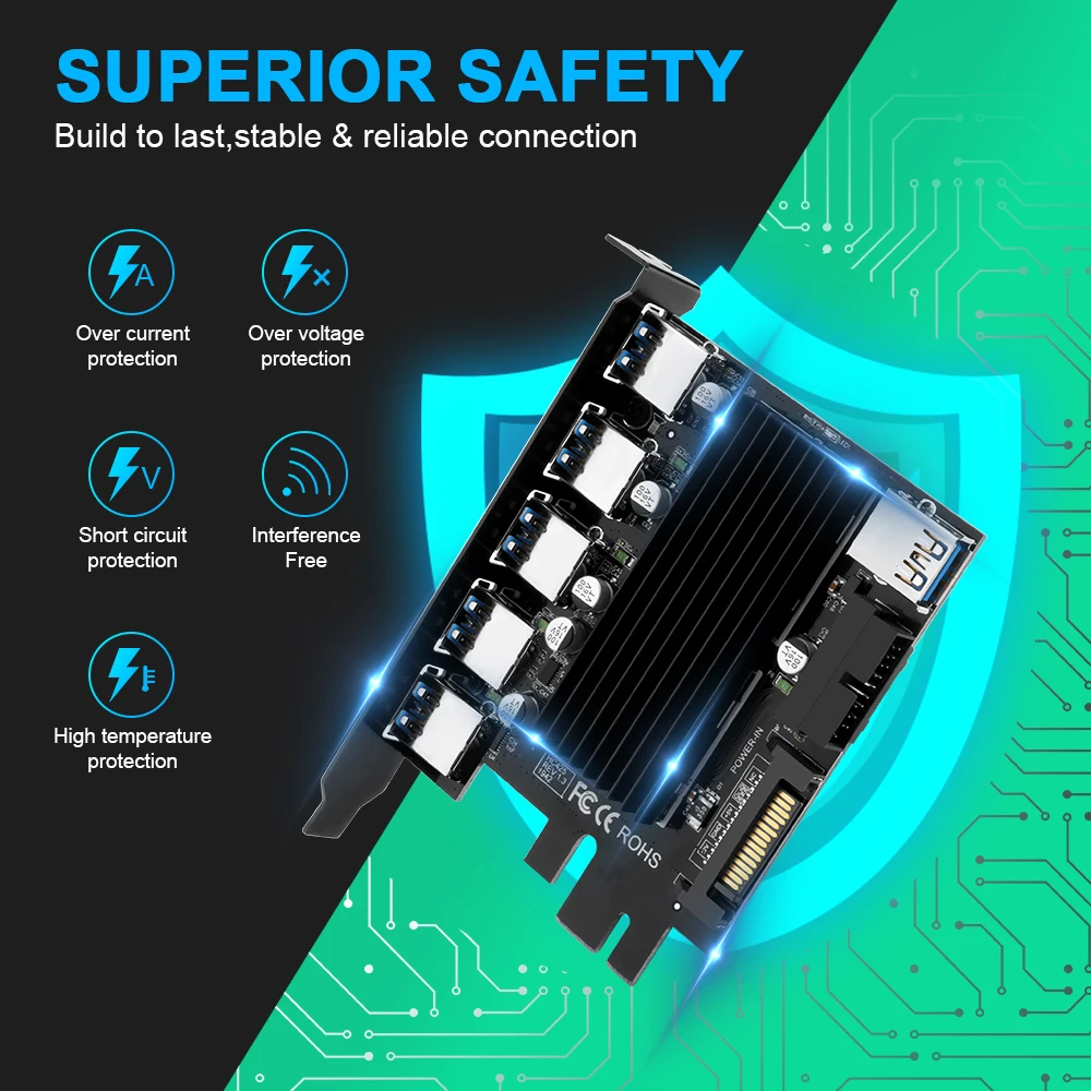 Эта карта расширения USB 3,0 PC-E может использоваться только для настольного ПК с 19-контактным портом usb 3,0; поскольку это не PCI-E, это 19-контактный порт USB 3,0 (сейчас почти все настольные ПК имеют 19-контактный порт usb 3,0. Но если вашему ПК больше 10 лет, пожалуйста, проверьте своего хоста.)1. 【 PCI-E к USB/Type C Расширительная карта 】 3 порта USB 3,0, 2 порта USB C. PCI-E к USB3.1: Расширьте свой компьютер с несколькими портами, USB-A и USB-C. USB-A вниз совместим с USB3.0/USB2.0. USB-C порт обеспечивает удобство для устройств Type-C.