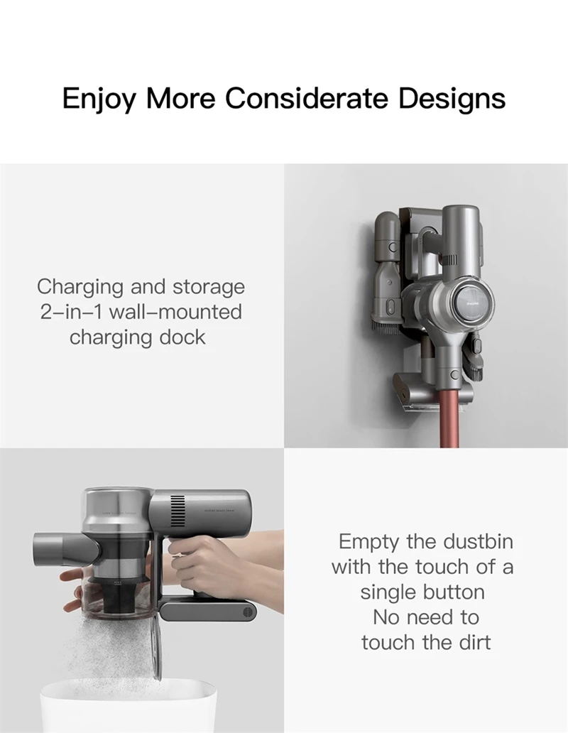 Новое поколение пылесоса Dreame 32 оптимизированных элемента мощность всасывания улучшена на 50% 90 минут во время работы. Улучшенная на 50% точная фильтрация, уменьшение потерь фильтра на 63% 3 новых функций
