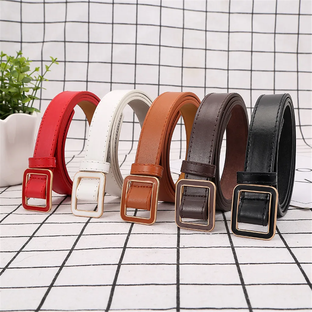 Женская мода пояс узкий стрейч платье ремень тонкая пряжка кожаный пояс