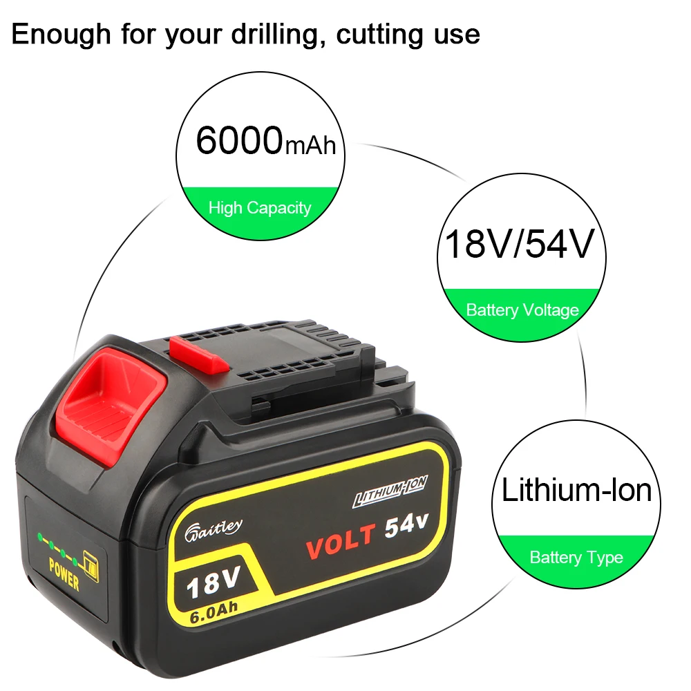 Совместимость: Замените Dewalt 18 В/54 в XR аккумулятор DCB606 DCB546 DCB547 и совместим со всеми инструментами Dewalt 18 в XR и 54 в XR.