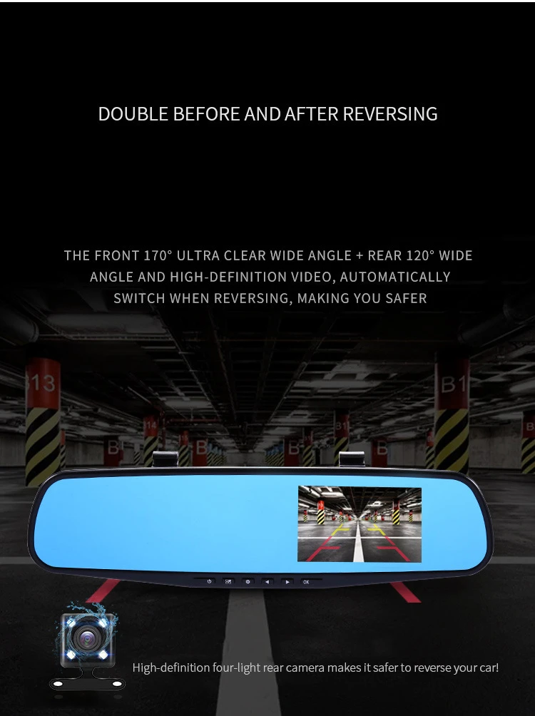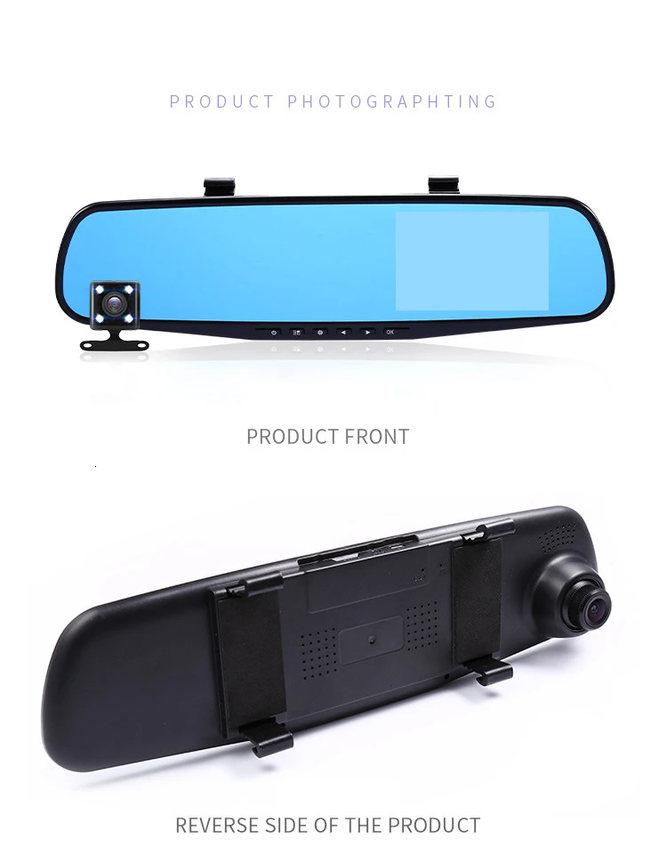 Новейший автомобильный видеорегистратор 4,3-дюймовый видеорегистратор FHD 1080 P двойной объектив Автомобильная зеркальная камера заднего вида с камерой заднего вида Авто рекордер видео